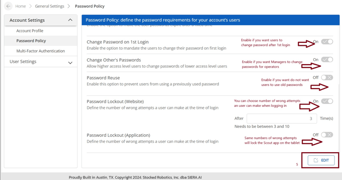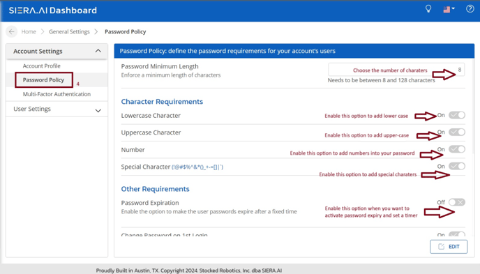 What is the Password Policy at SIERA.AI